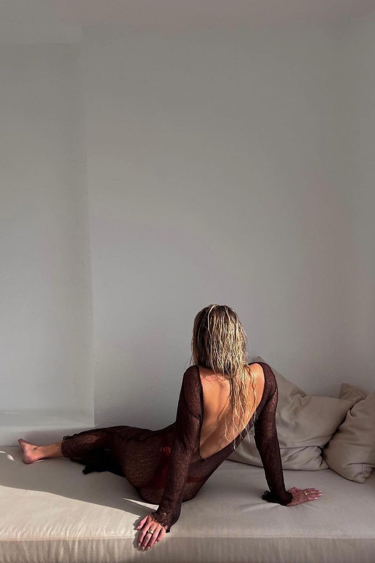 Our Delilah Maxi Dress is delicately handcrafted by our artisans in Bali, with a daring low back, flared sleeves and plenty of stretch for comfort. Delilah is sheer and unlined, designed to be worn over your favourite bikini and transition from day to night.