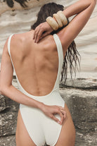 The ultimate low-back one-piece defined by a clean, sculpted silhouette. Seamless through the front with subtle back shaping seams and a refined bust dart for natural structure, designed with moderate coverage and extensively fit-tested for hold. Crafted from our signature Italian recycled fabric for a smooth, sculpted finish. In Ivory, the style is double-lined for complete coverage.
