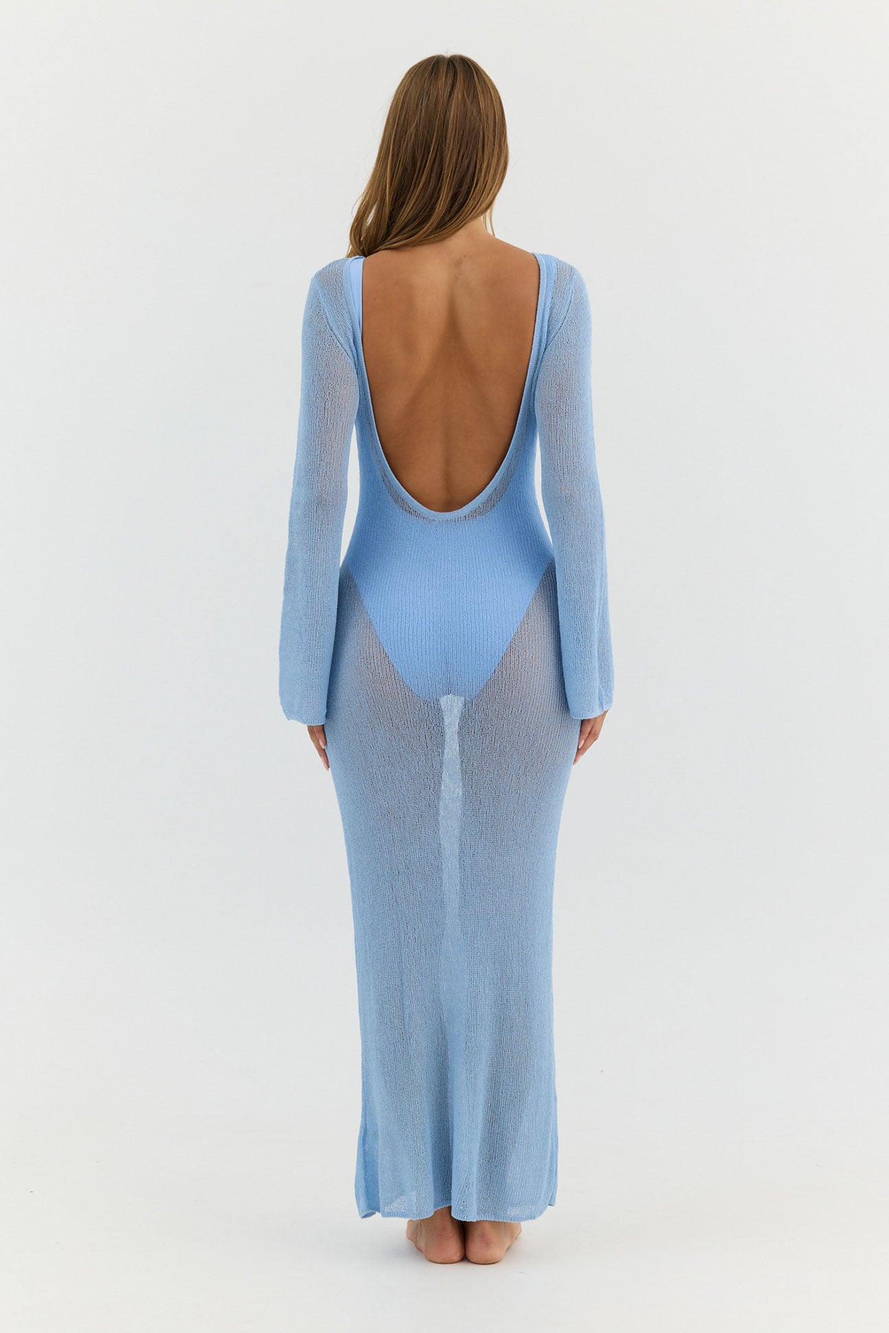 Palma, a sheer knit maxi dress designed to layer effortlessly over swim.