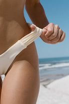 Our best-selling bikini bottom and a true Sylk staple. Defined by soft ruched detailing and a flattering cheeky cut designed to elongate the leg, Thea enhances your natural shape with a refined, minimal finish. Crafted from our signature Italian recycled fabric as part of our sustainable luxury swimwear collection. In Soft Yelow, the style is double-lined for complete coverage.