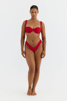 Our Thea bottom in red are an elevated take on the classic bikini shape. Featuring rouched detailing and a cheeky cut, they are designed to elongate the leg. Crafted in our signature luxe eco friendly fabric, the Thea bottoms provide the ultimate comfort, both in and out of the water.