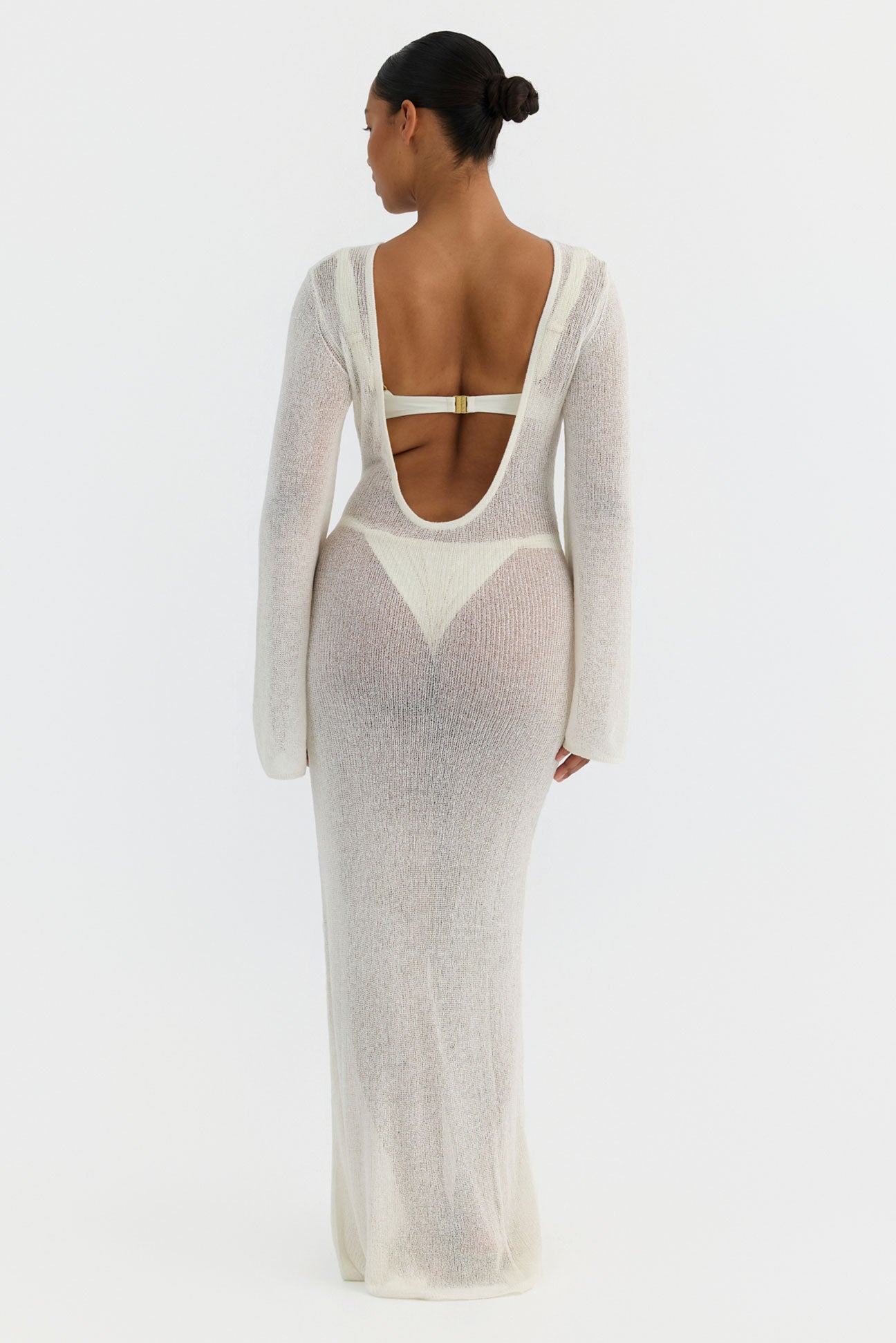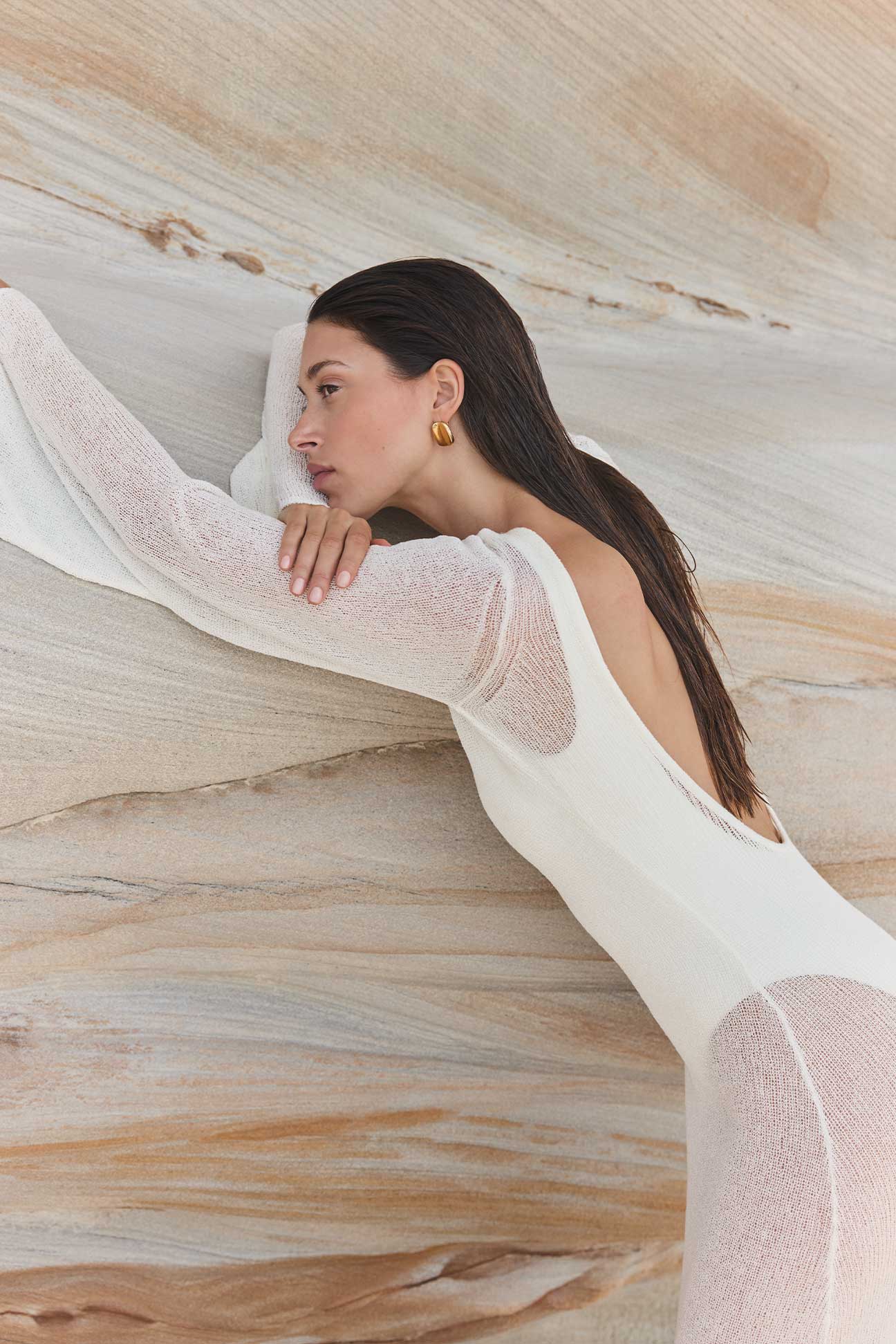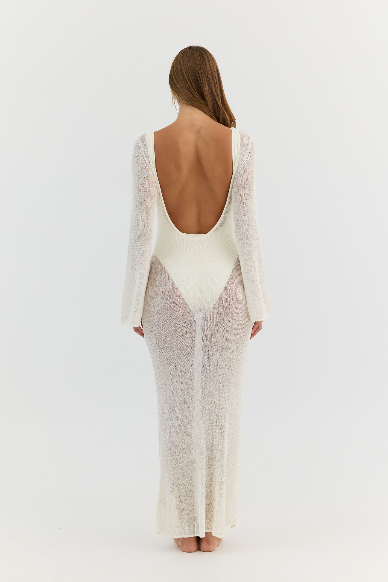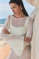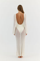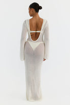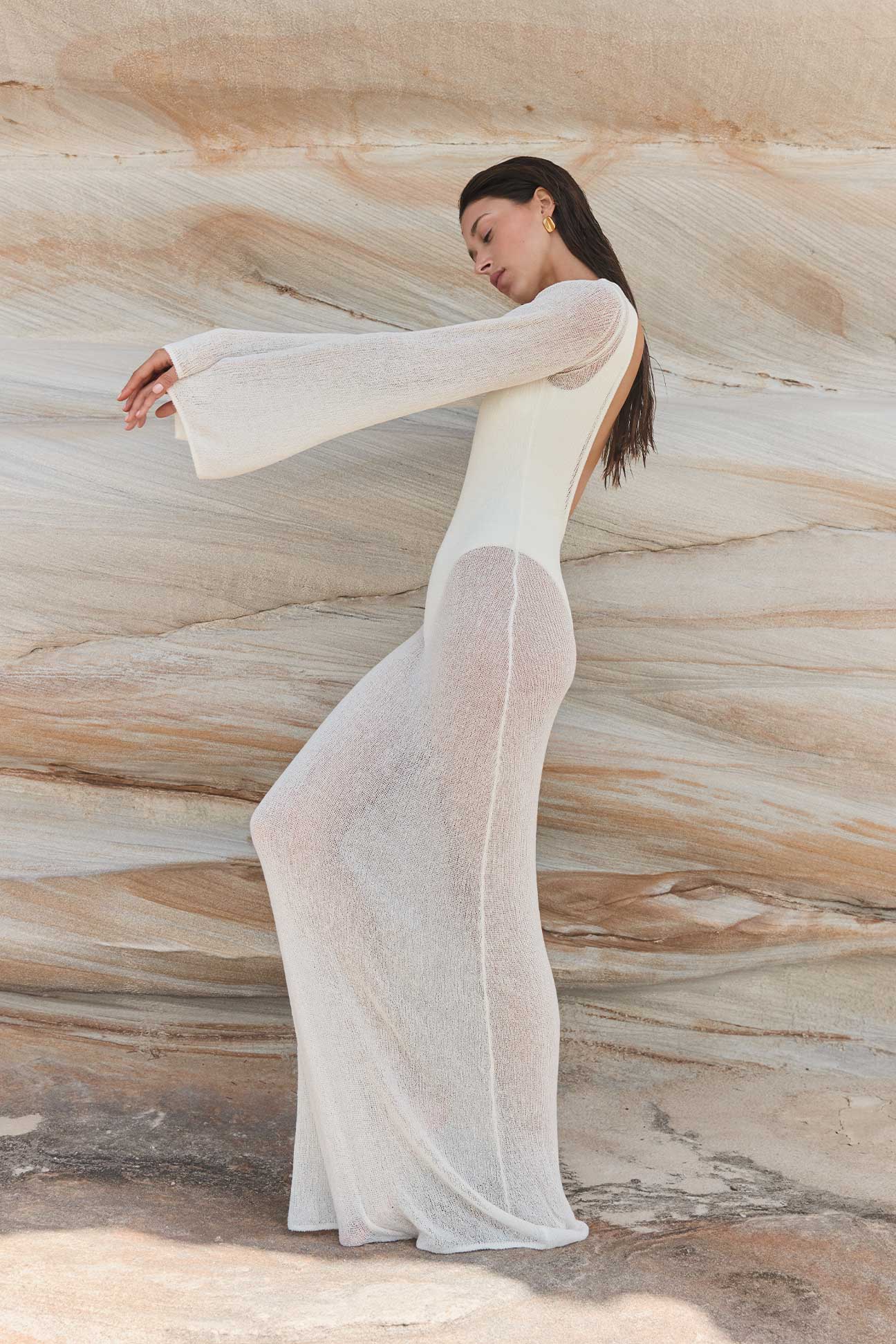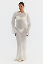 Palma, a sheer knit maxi dress designed to layer effortlessly over swim.