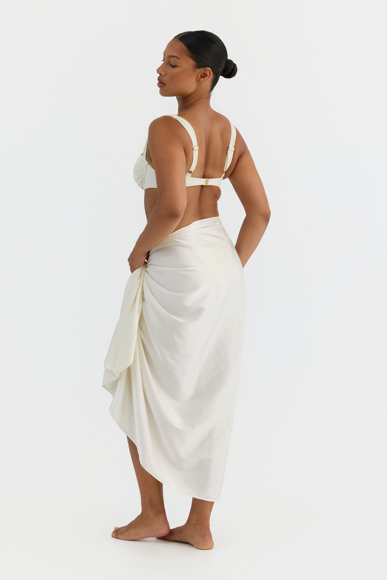 Perfect for layering, our Signature Sarong is an essential addition to your swimwear collection. Crafted from a fluid poly-spandex blend, with a soft shimmer finish, this piece drapes effortless over the body with a hint of stretch for ease of movement. Style as a chic mini or a classic mid-length.