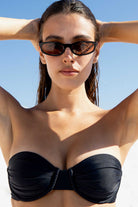 Our Solene strapless top effortlessly blends style and functionality. Crafted from our signature Italian recycled fabric featuring ECONYL®. Providing perfect support for A-E cup sizes, a tie back ensures a customizable fit. With underwire for optimal shape and support and being fully lined, the Solene top delivers both confidence and comfort.