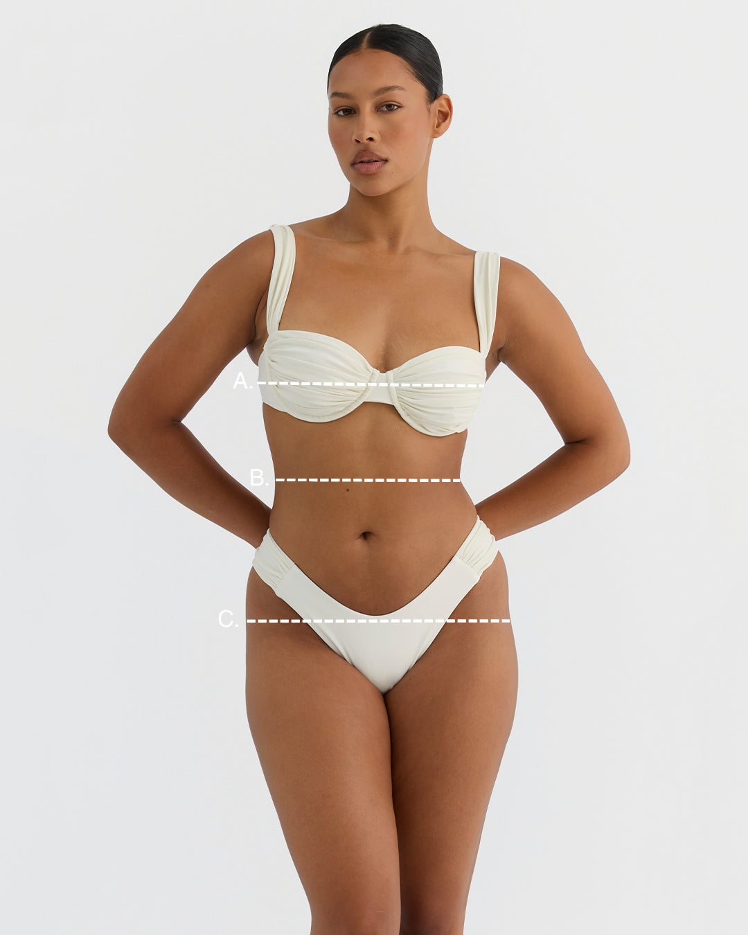 - All measurements are taken on the body, not the garment.